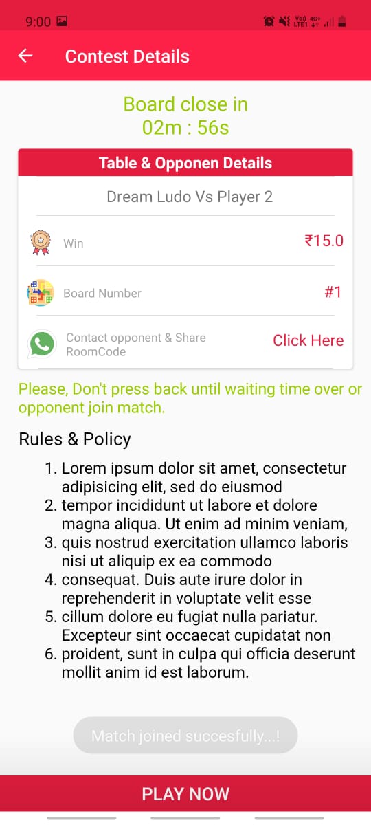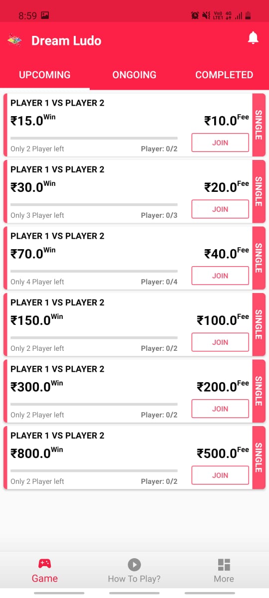 After winning take screenshot of your winning time from ludo app and upload in the app from ONGOING matches. - Need Any Help ?